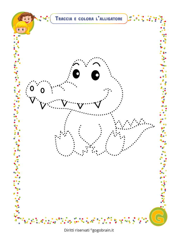 Traccia con una matita la linea tratteggiata e poi colora il disegno … Continua about Traccia e colora l’alligatore