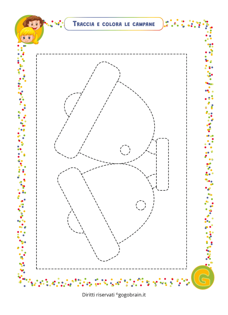 Traccia con una matita la linea tratteggiata e poi colora il disegno … Continua about Traccia e colora le campane