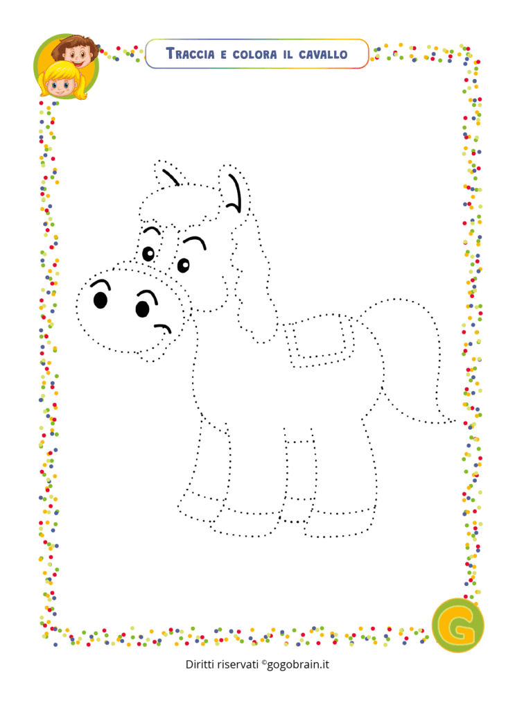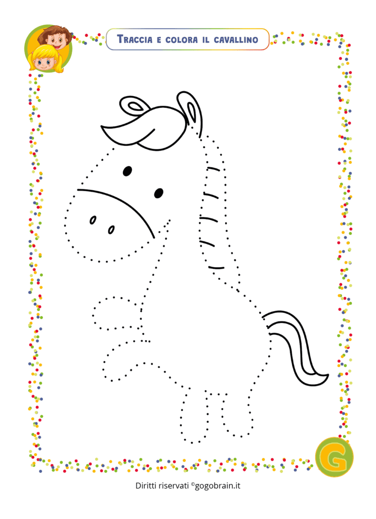 Con una matita passa sopra la linea tratteggiata e poi colora la figura con i tuoi colori preferiti. … Continua about Traccia e colora il cavallino