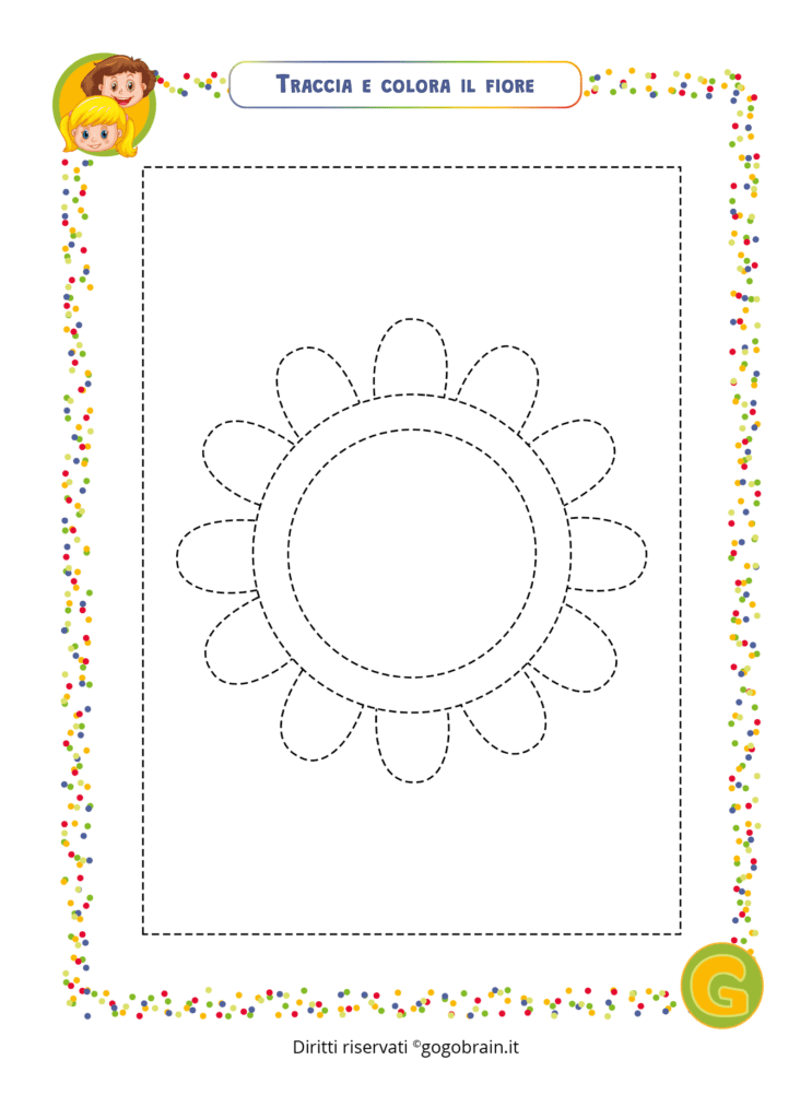 Con una matita passa sopra la linea tratteggiata e poi colora la figura con i tuoi colori preferiti. … Continua about Traccia e colora il fiore