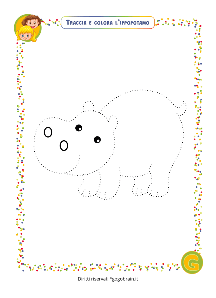 Con una matita passa sopra la linea tratteggiata e poi colora la figura con i tuoi colori preferiti. … Continua about Traccia e colora l’ippopotamo