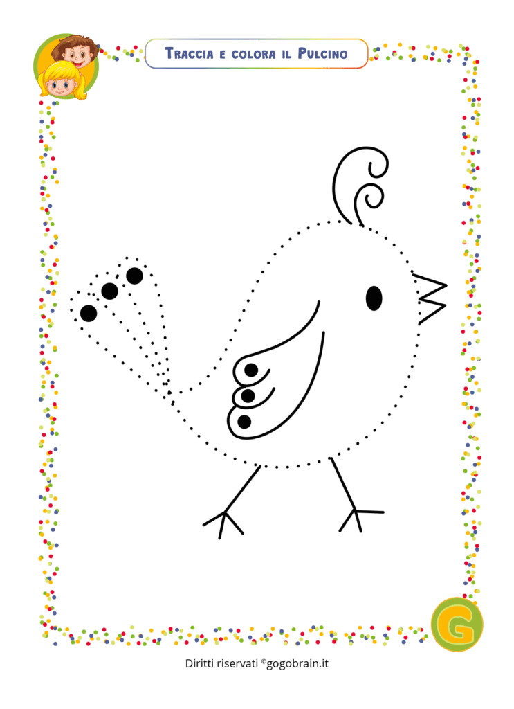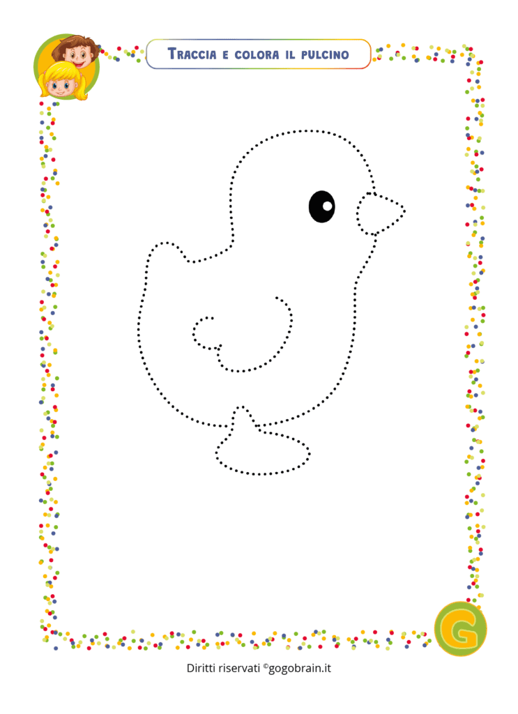 Prendi una matita e segui la linea tratteggiata, poi colora la figura. … Continua about Traccia e colora il pulcino