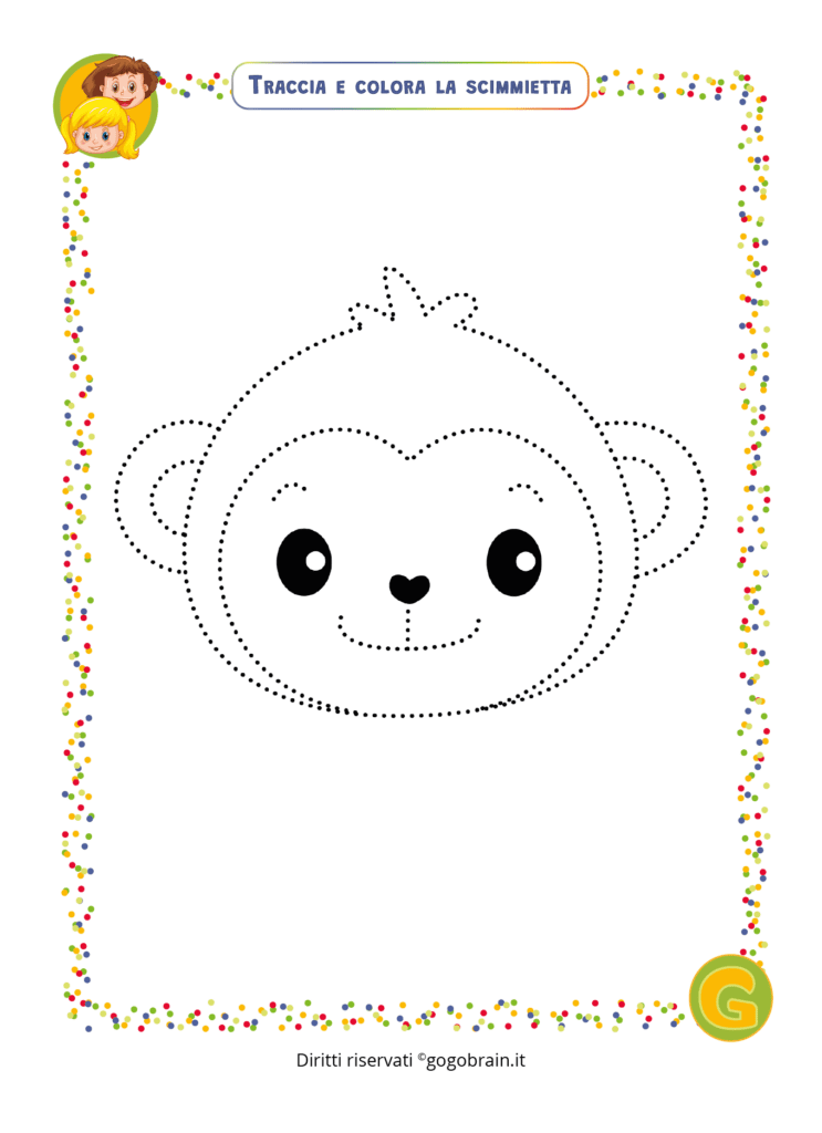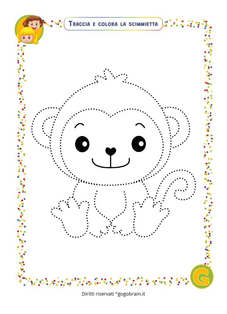 Traccia con una matita la linea tratteggiata e poi colora il disegno … Continua about Traccia, colora e ritaglia la scimmietta
