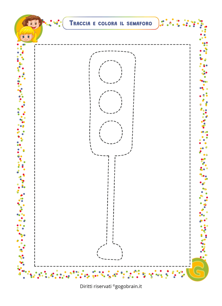 Prendi una matita e segui la linea tratteggiata, poi colora la figura. … Continua about Traccia e colora il semaforo