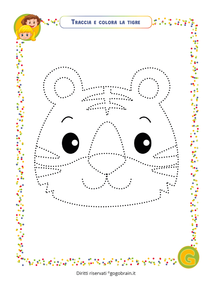Con una matita passa sopra la linea tratteggiata e poi colora la figura con i tuoi colori preferiti. … Continua about Traccia e colora la tigre
