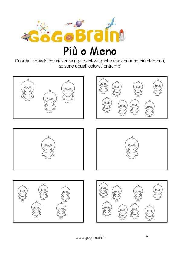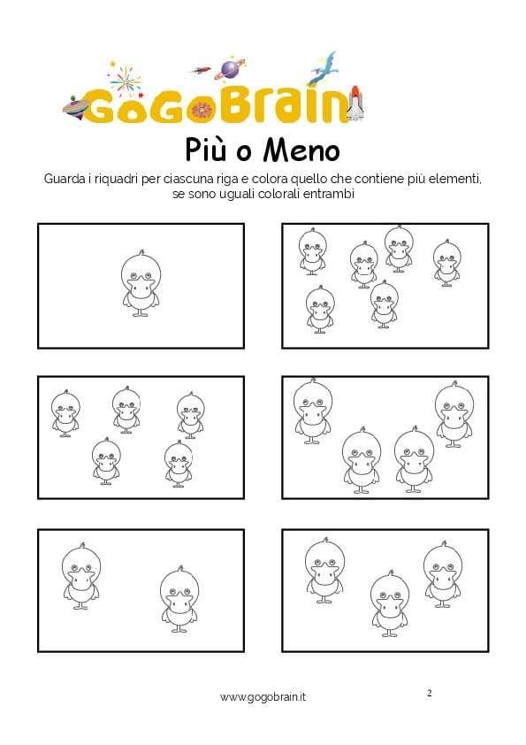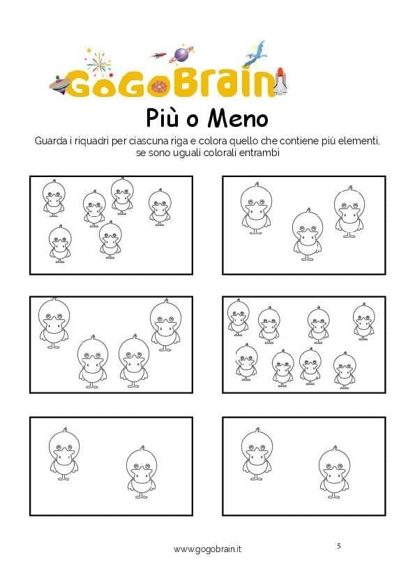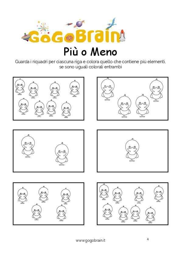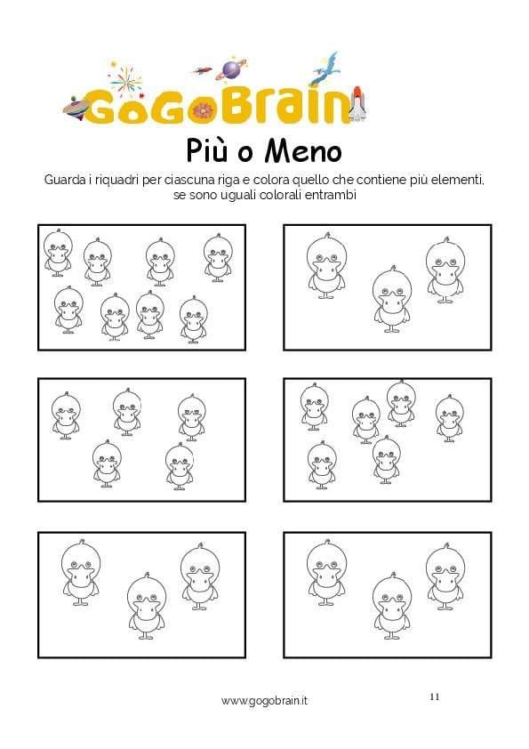 Guarda i riquadri per ciascuna riga e colora quello che contiene più elementi, se sono uguali colorali entrambi. … Continua about Colora le papere più numerose-Scheda n. 11