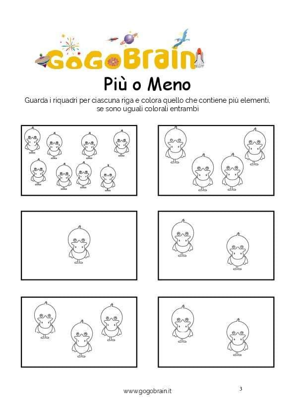 Guarda i riquadri per ciascuna riga e colora quello che contiene più elementi, se sono uguali colorali entrambi. … Continua about Colora le papere più numerose-Scheda n. 03