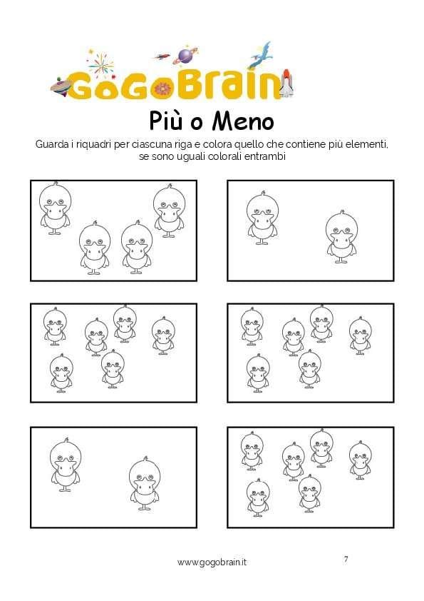 Guarda i riquadri per ciascuna riga e colora quello che contiene più elementi, se sono uguali colorali entrambi. … Continua about Colora le papere più numerose-Scheda n. 07