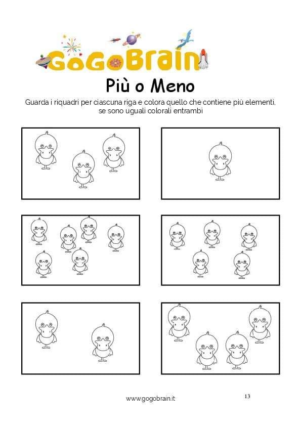 Guarda i riquadri per ciascuna riga e colora quello che contiene più elementi, se sono uguali colorali entrambi. … Continua about Colora le papere più numerose-Scheda n. 13