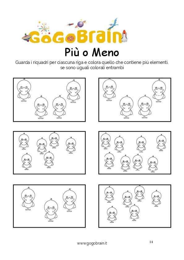 Guarda i riquadri per ciascuna riga e colora quello che contiene più elementi, se sono uguali colorali entrambi. … Continua about Colora le papere più numerose-Scheda n. 14
