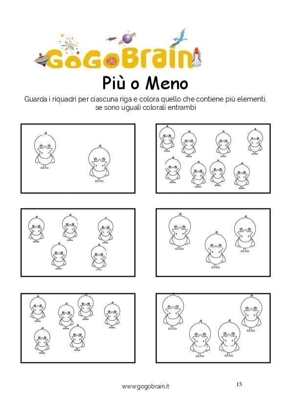 Guarda i riquadri per ciascuna riga e colora quello che contiene più elementi, se sono uguali colorali entrambi. … Continua about Colora le papere più numerose-Scheda n. 15