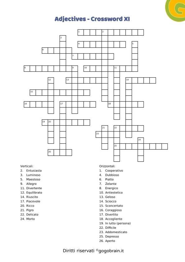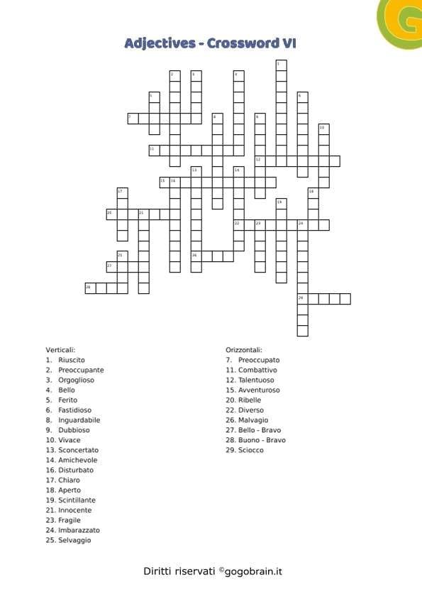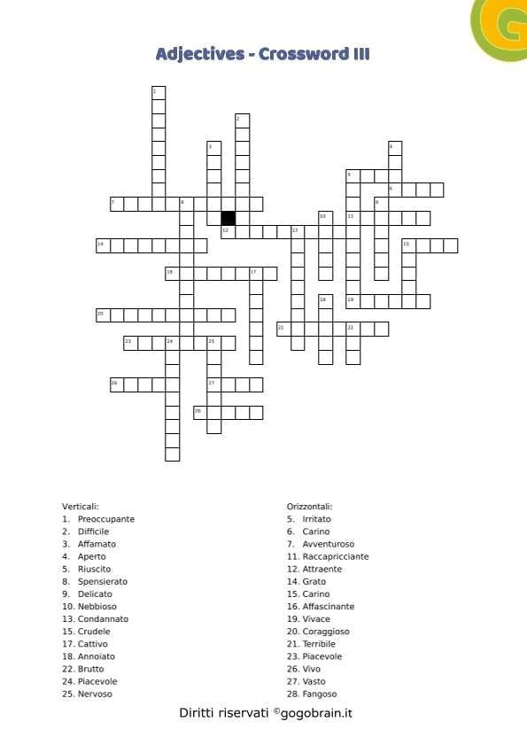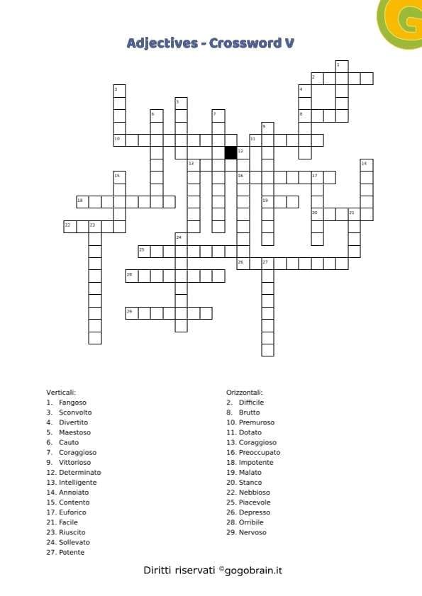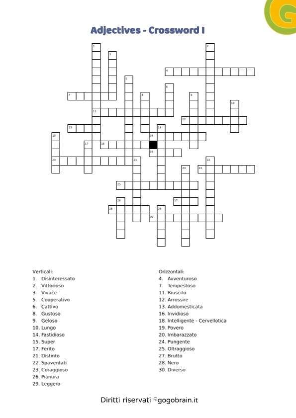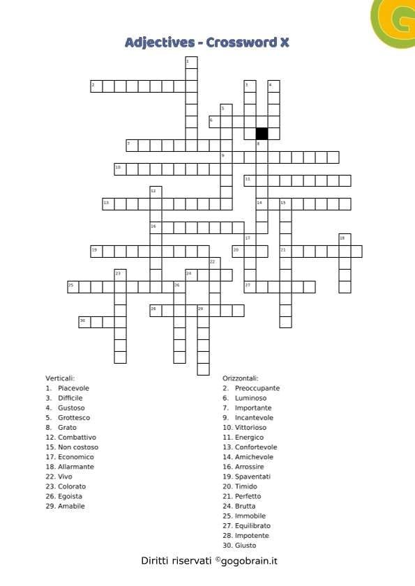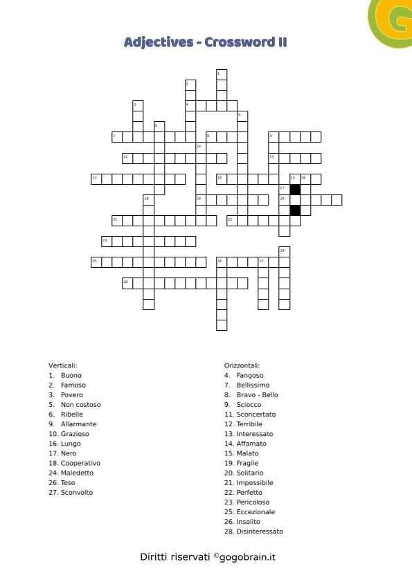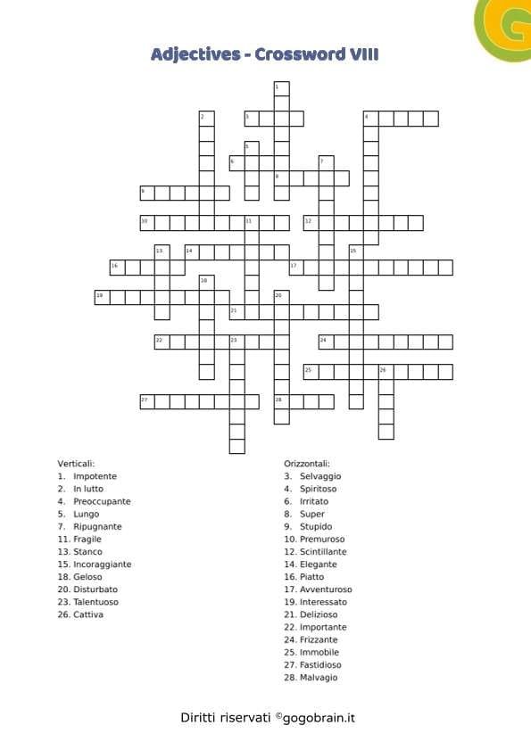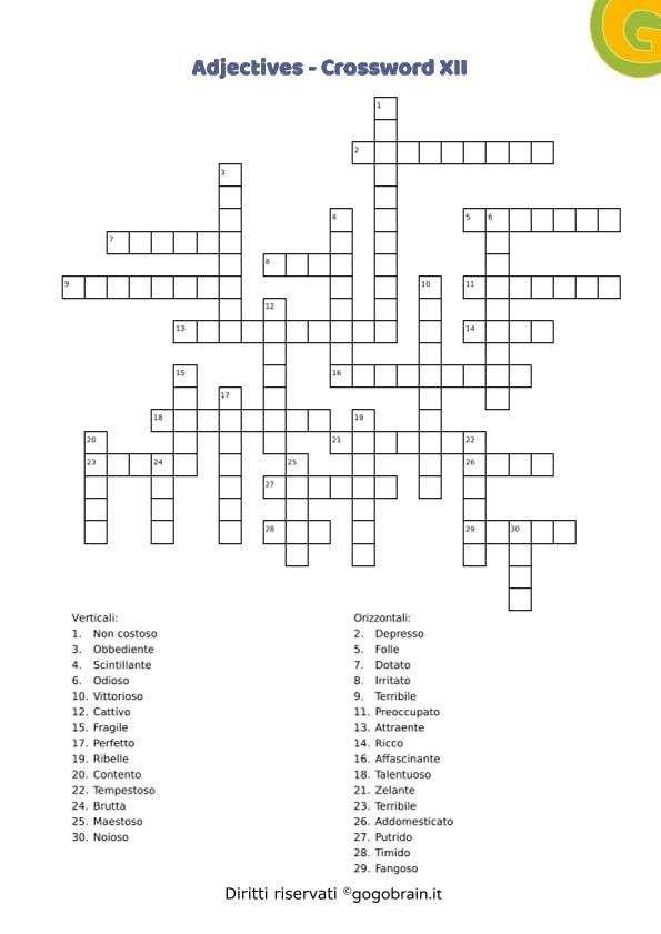 Cruciverba sugli aggettivi della lingua inglese. Dodicesima scheda della serie con correttore incluso. … Continua about Adjectives – Cruciverba XII
