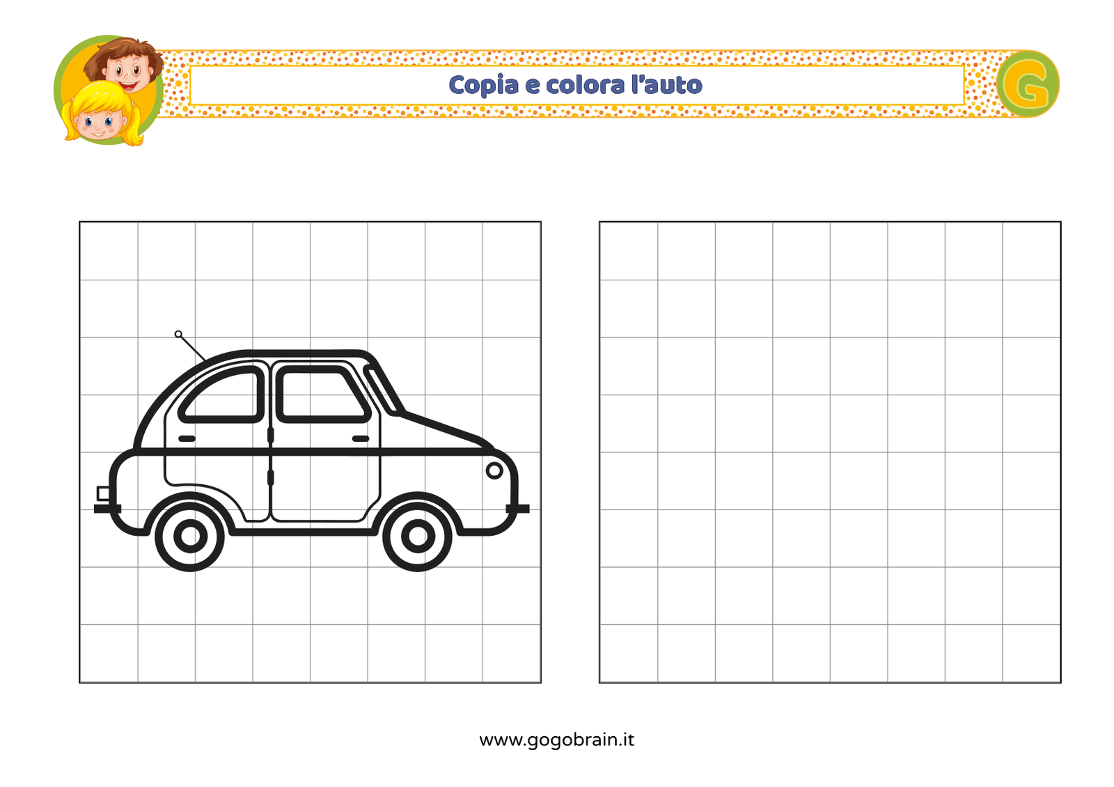 Con l'aiuto dei quadretti copia la figura di sinistra e poi colorala a tuo piacere. … Continua about Copia e colora l’auto