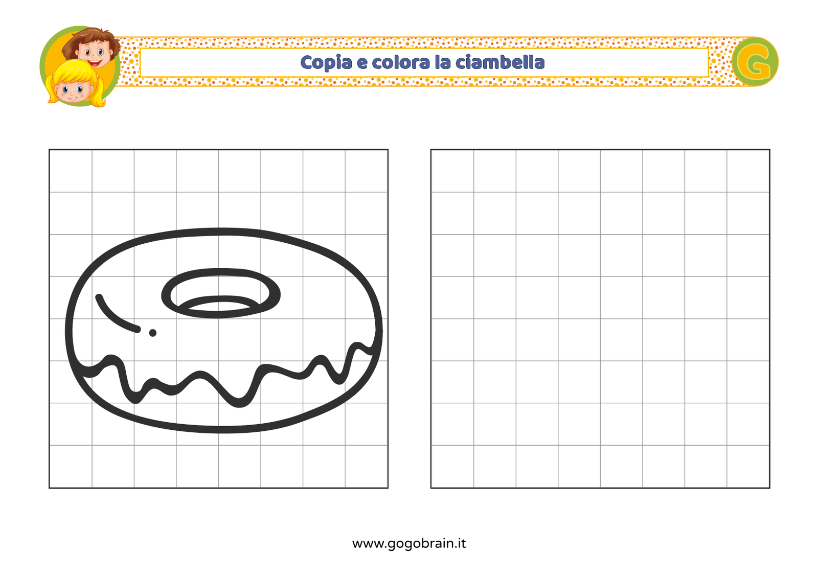 Con l'aiuto dei quadretti copia la figura di sinistra e poi colorala a tuo piacere. … Continua about Copia e colora la ciambella