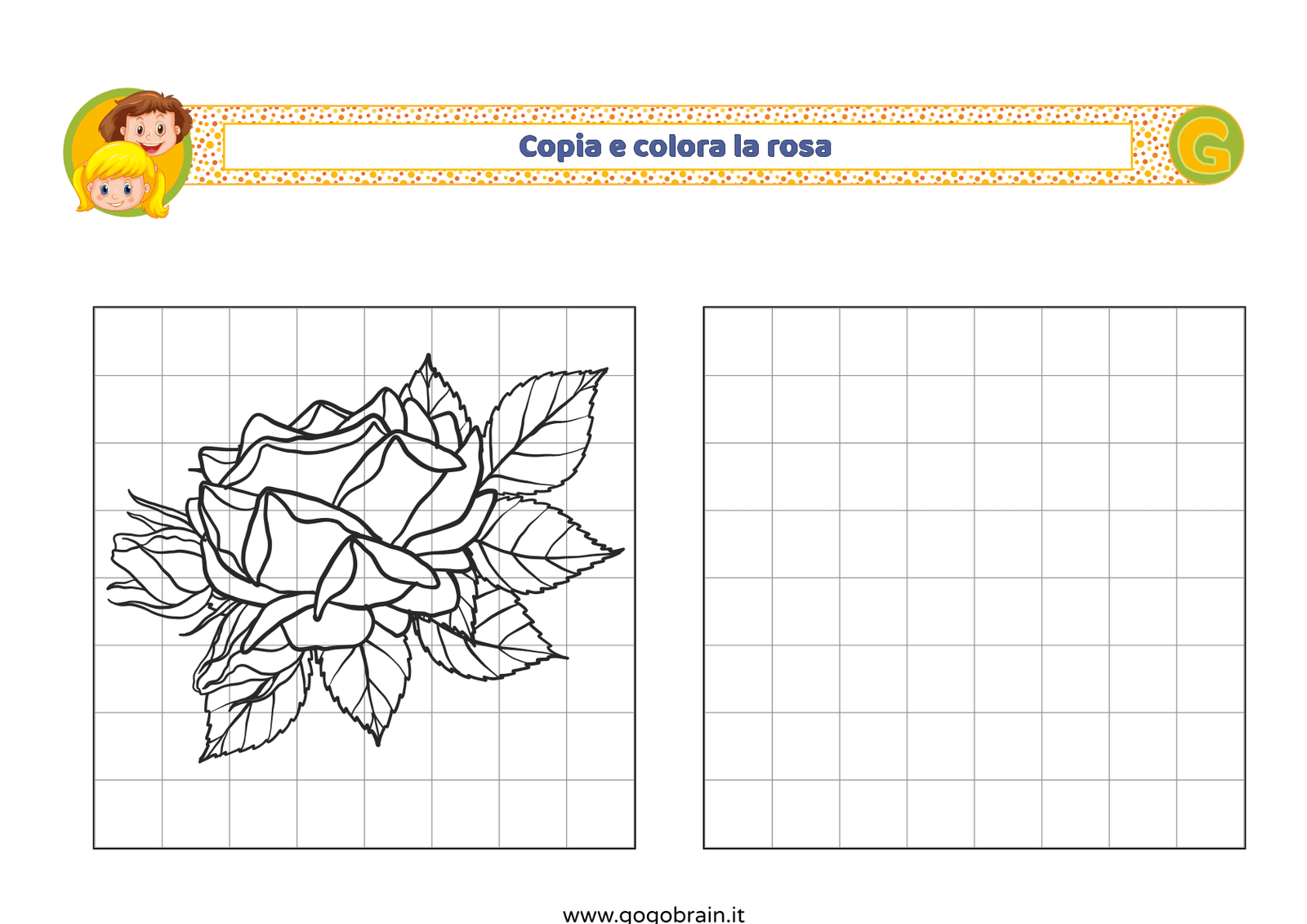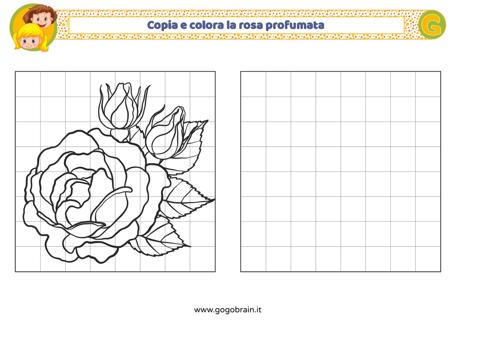 Con l'aiuto dei quadretti copia la figura di sinistra e poi colorala a tuo piacere. … Continua about Copia e colora la rosa profumata