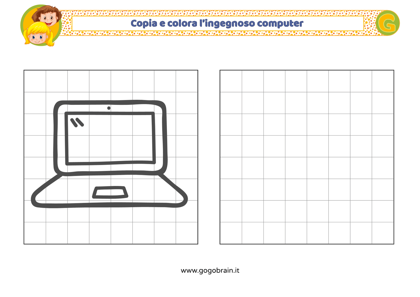 Con l'aiuto dei quadretti copia la figura di sinistra e poi colorala a tuo piacere. … Continua about Copia e colora l’ingegnoso computer