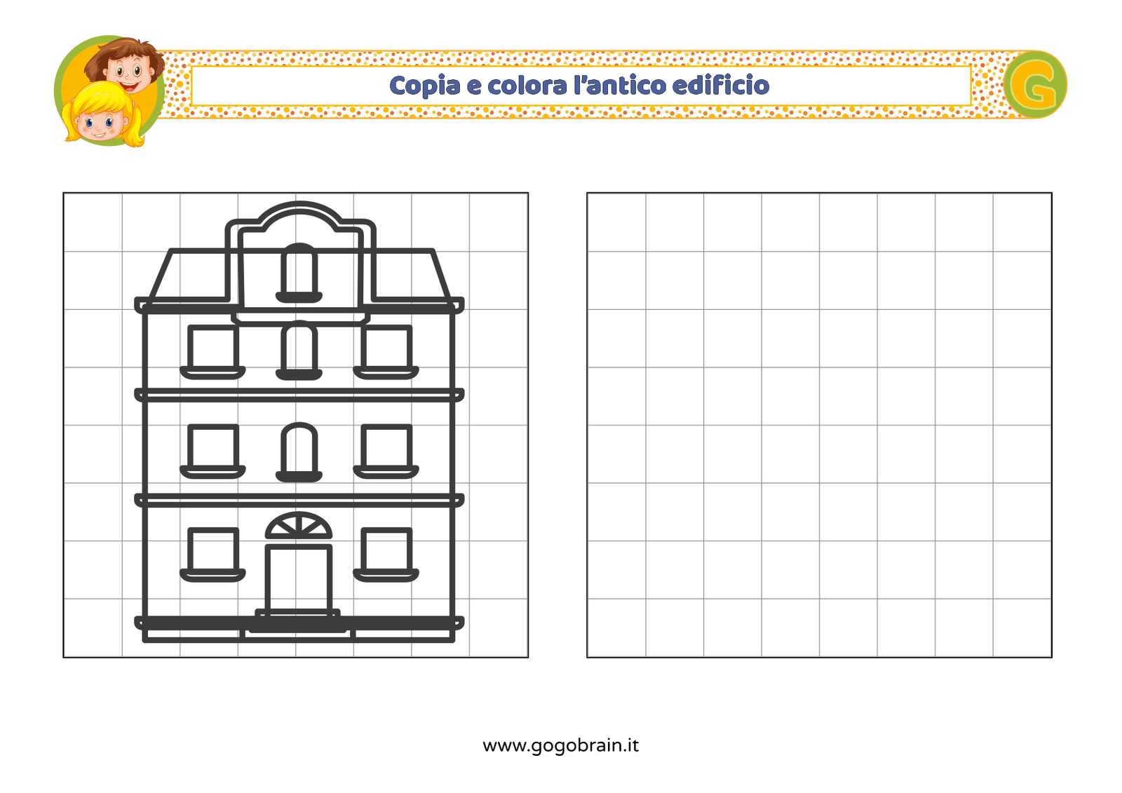 Con l'aiuto dei quadretti copia la figura di sinistra e poi colorala a tuo piacere. … Continua about Copia e colora l’antico edificio