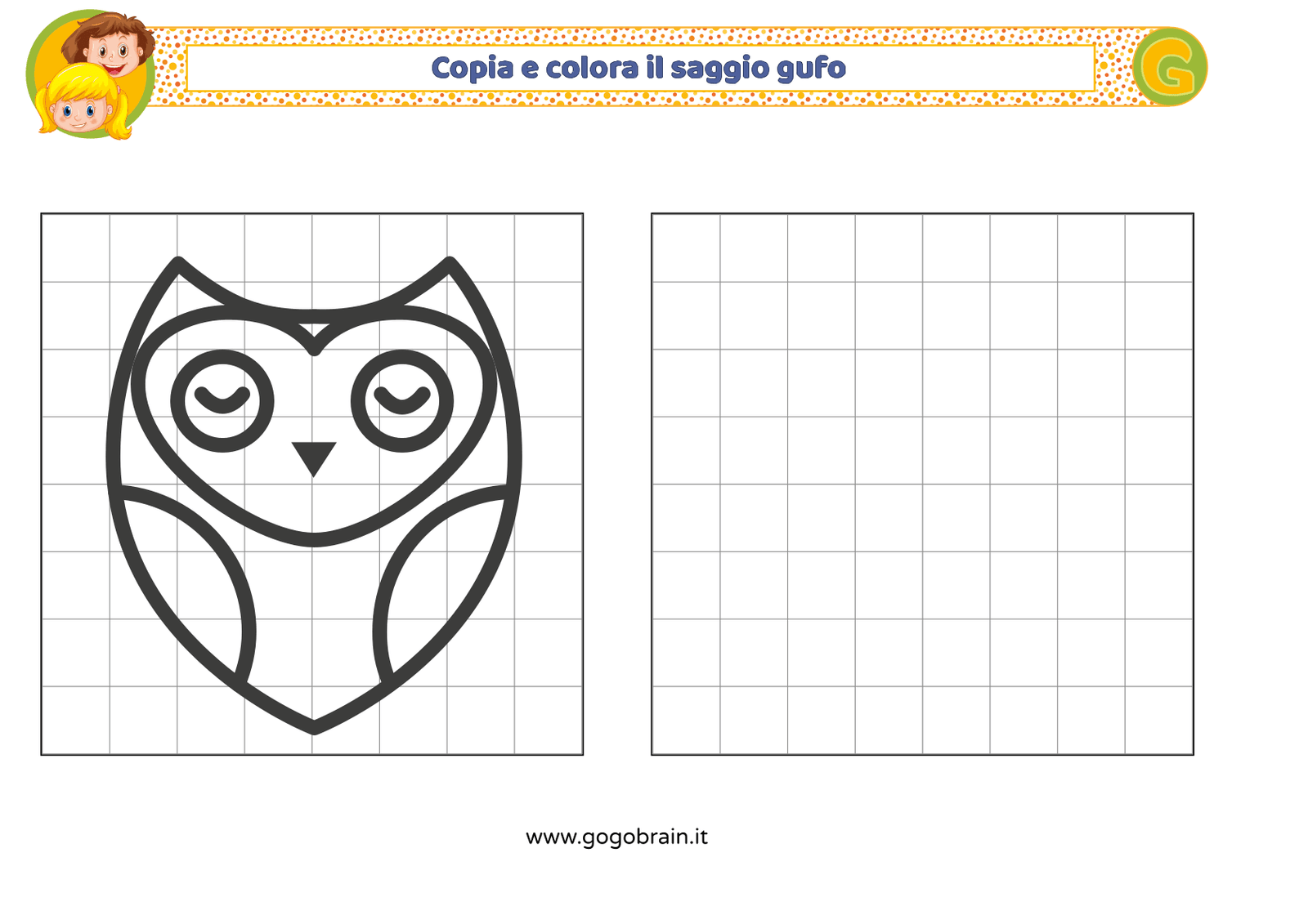 Con l'aiuto dei quadretti copia la figura di sinistra e poi colorala a tuo piacere. … Continua about Copia e colora il saggio gufo
