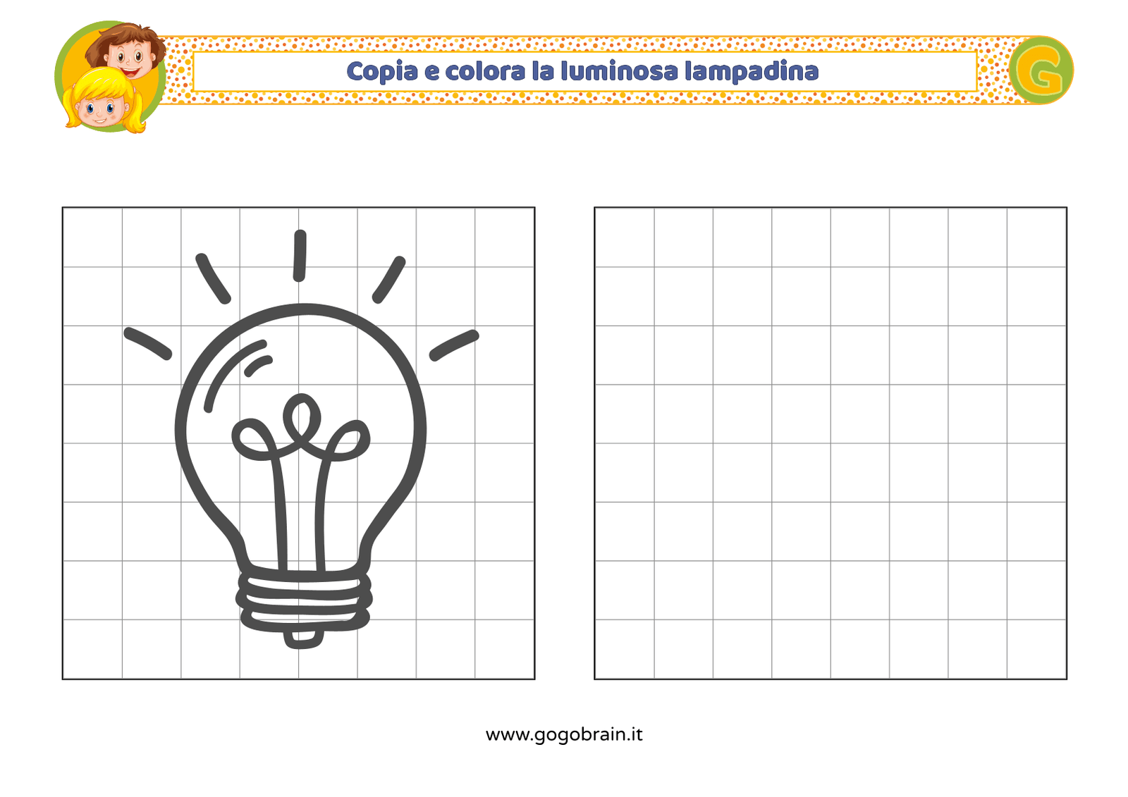 Con l'aiuto dei quadretti copia la figura di sinistra e poi colorala a tuo piacere. … Continua about Copia e colora la luminosa lampadina
