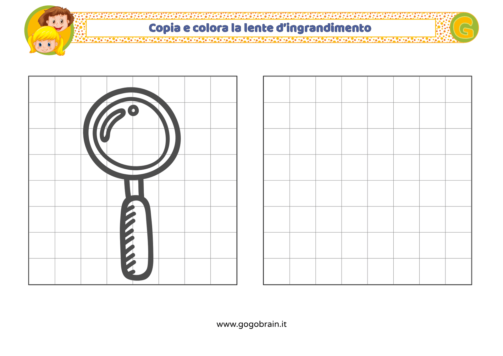 Con l'aiuto dei quadretti copia la figura di sinistra e poi colorala a tuo piacere. … Continua about Copia e colora la lente d’ingrandimento