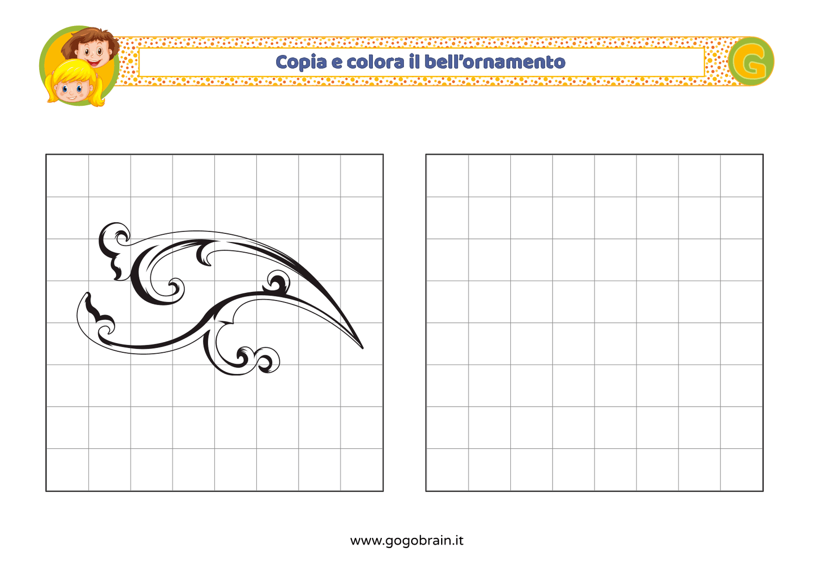 Con l'aiuto dei quadretti copia la figura di sinistra e poi colorala a tuo piacere. … Continua about Copia e colora il bell’ornamento