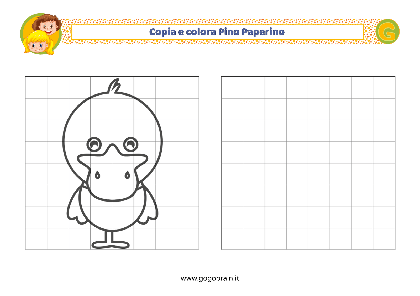 Con l'aiuto dei quadretti copia la figura di sinistra e poi colorala a tuo piacere. … Continua about Copia e colora Pino Paperino