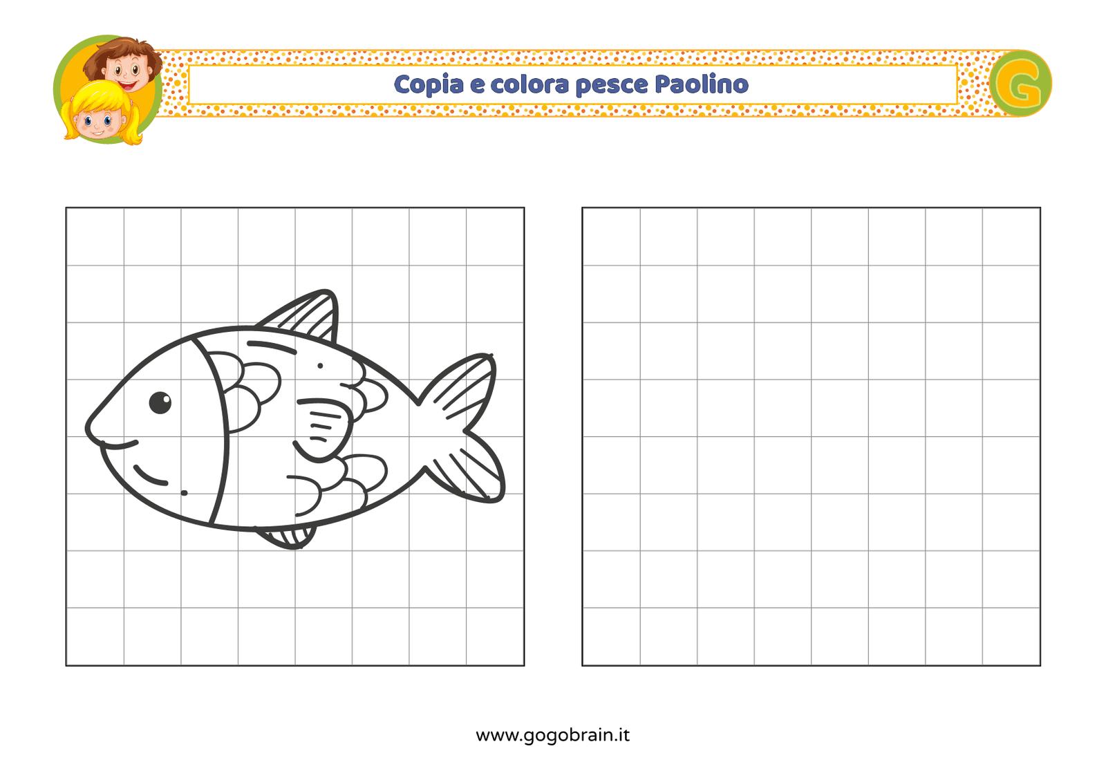 Con l'aiuto dei quadretti copia la figura di sinistra e poi colorala a tuo piacere. … Continua about Copia e colora il pesce Paolino