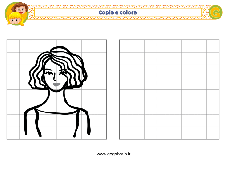 Con l'aiuto dei quadretti copia la figura di sinistra e poi colorala a tuo piacere. … Continua about Copia e colora il ritratto di donna