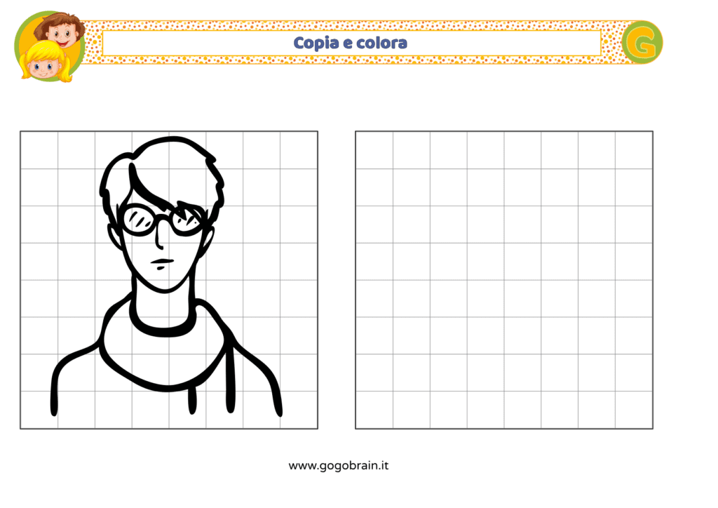 Con l'aiuto dei quadretti copia la figura di destra e poi colorala a tuo piacere. … Continua about Copia e colora il ritratto di uomo