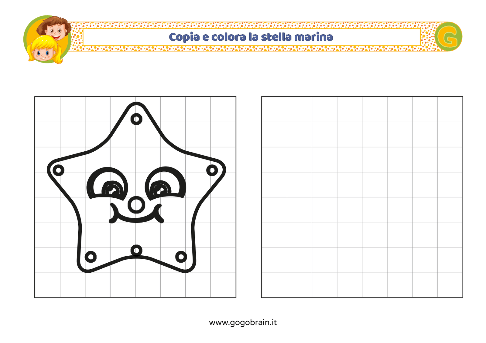 Con l'aiuto dei quadretti copia la figura di sinistra e poi colorala a tuo piacere. … Continua about Copia e colora la stella marina