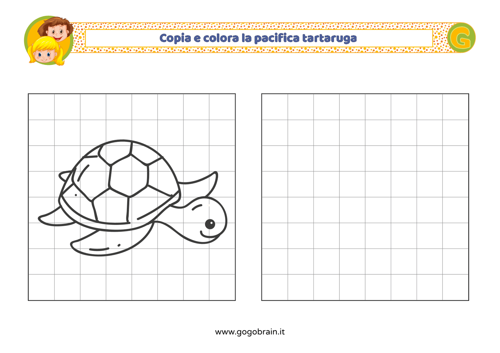 Con l'aiuto dei quadretti copia la figura di sinistra e poi colorala a tuo piacere. … Continua about Copia e colora la pacifica tartaruga