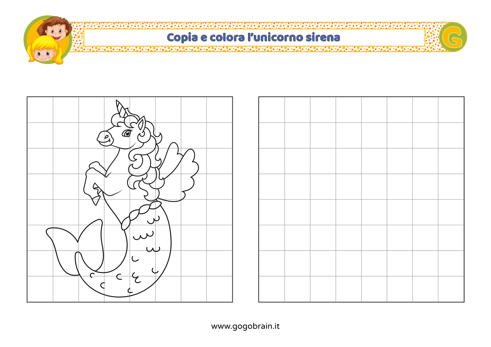 Con l'aiuto dei quadretti copia la figura di sinistra e poi colorala a tuo piacere. … Continua about Copia e colora l’unicorno sirena