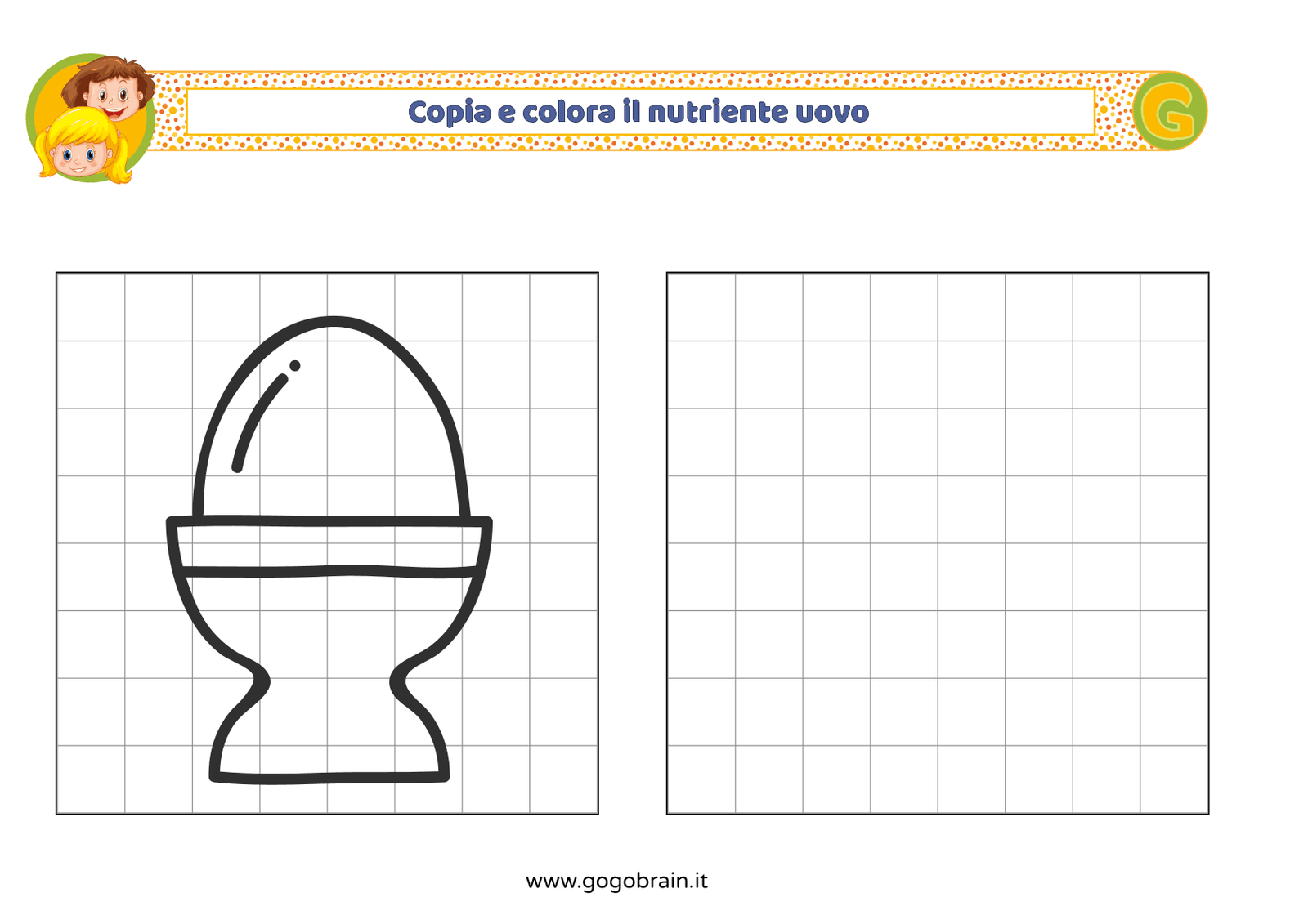 Con l'aiuto dei quadretti copia la figura di sinistra e poi colorala a tuo piacere. … Continua about Copia e colora il nutriente uovo