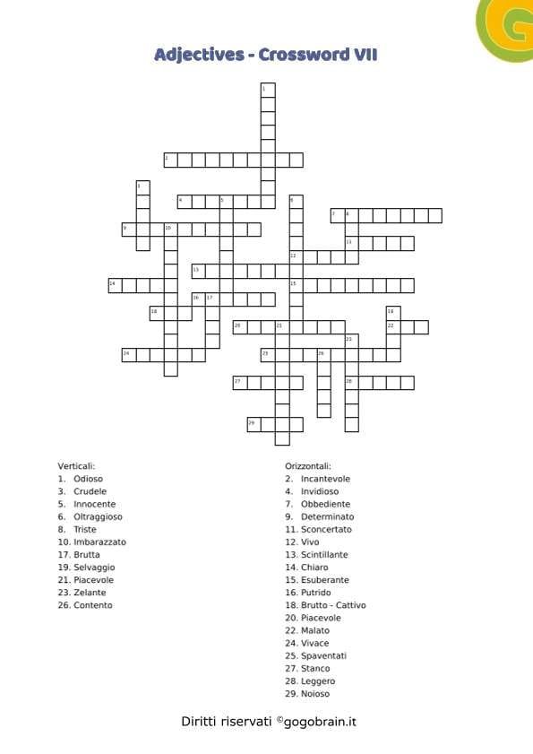 Cruciverba sugli aggettivi della lingua inglese. Dodicesima scheda della serie con correttore incluso. … Continua about Adjectives – Cruciverba XII