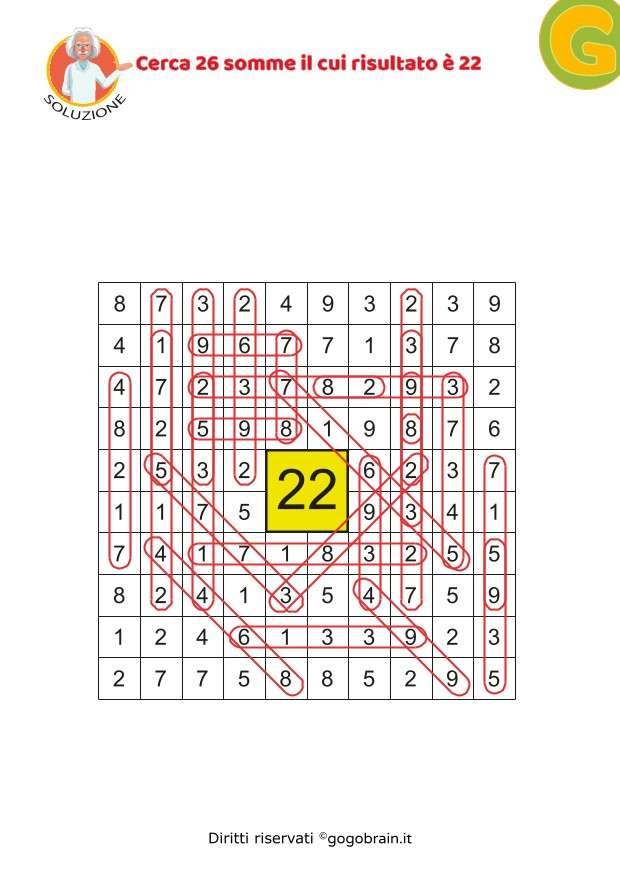 Si tratta di un puzzle-game in cui lo scopo e' individuare i numeri che sommati fra loro danno il numero grande al centro del foglio. I numeri devono … Continua about Cerca 26 somme il cui risultato è 22