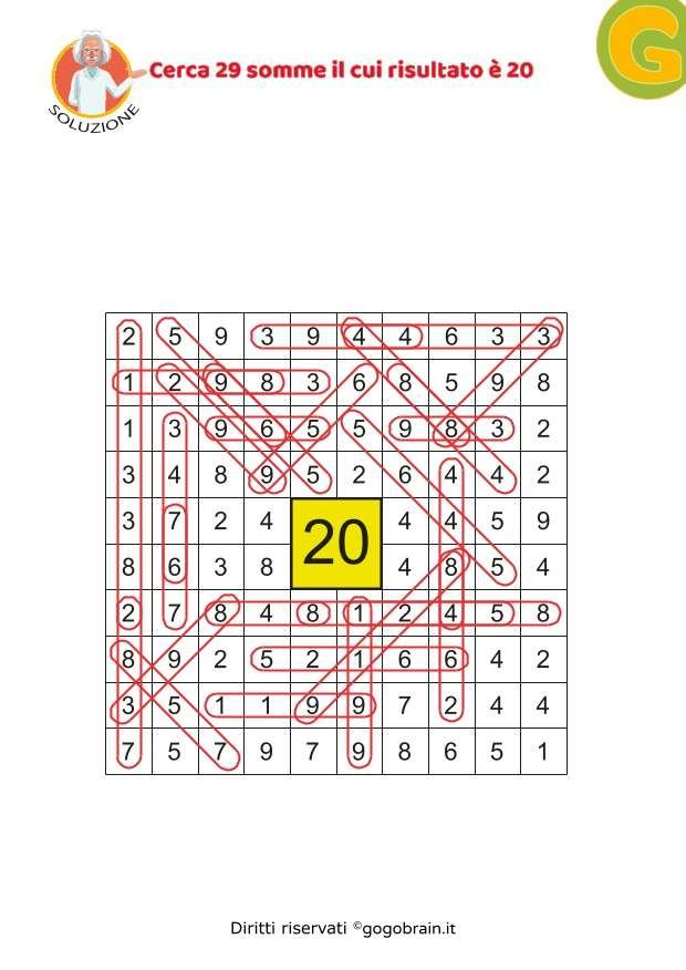 Si tratta di un puzzle-game in cui lo scopo e' individuare i numeri che sommati fra loro danno il numero grande al centro del foglio. I numeri devono … Continua about Cerca 29 somme il cui risultato è 20