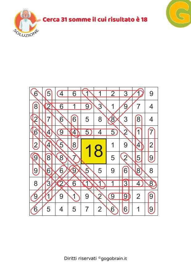 Si tratta di un puzzle-game in cui lo scopo e' individuare i numeri che sommati fra loro danno il numero grande al centro del foglio. I numeri devono … Continua about Cerca 31 somme il cui risultato è 18