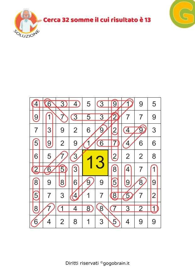 Si tratta di un puzzle-game in cui lo scopo e' individuare i numeri che sommati fra loro danno il numero grande al centro del foglio. I numeri devono … Continua about Cerca 32 somme il cui risultato è 13