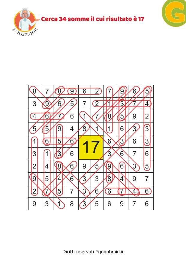 Si tratta di un puzzle-game in cui lo scopo e' individuare i numeri che sommati fra loro danno il numero grande al centro del foglio. I numeri devono … Continua about Cerca 34 somme il cui risultato è 17