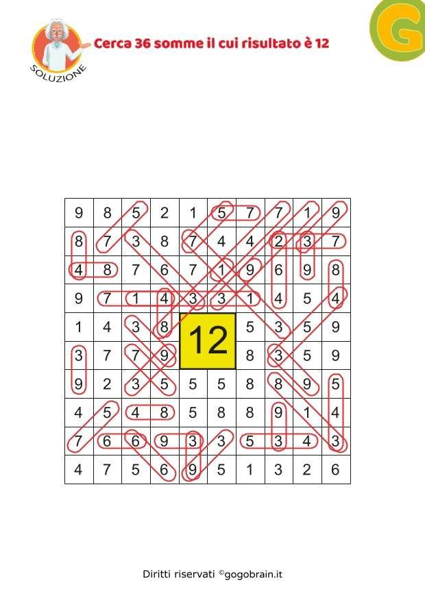 Si tratta di un puzzle-game in cui lo scopo e' individuare i numeri che sommati fra loro danno il numero grande al centro del foglio. I numeri devono … Continua about Cerca 36 somme il cui risultato è 12