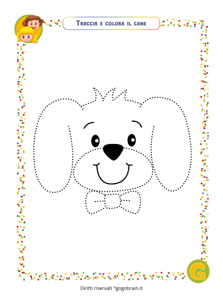 Prendi una matita e segui la linea tratteggiata, poi colora la figura. … Continua about Traccia e colora Fido