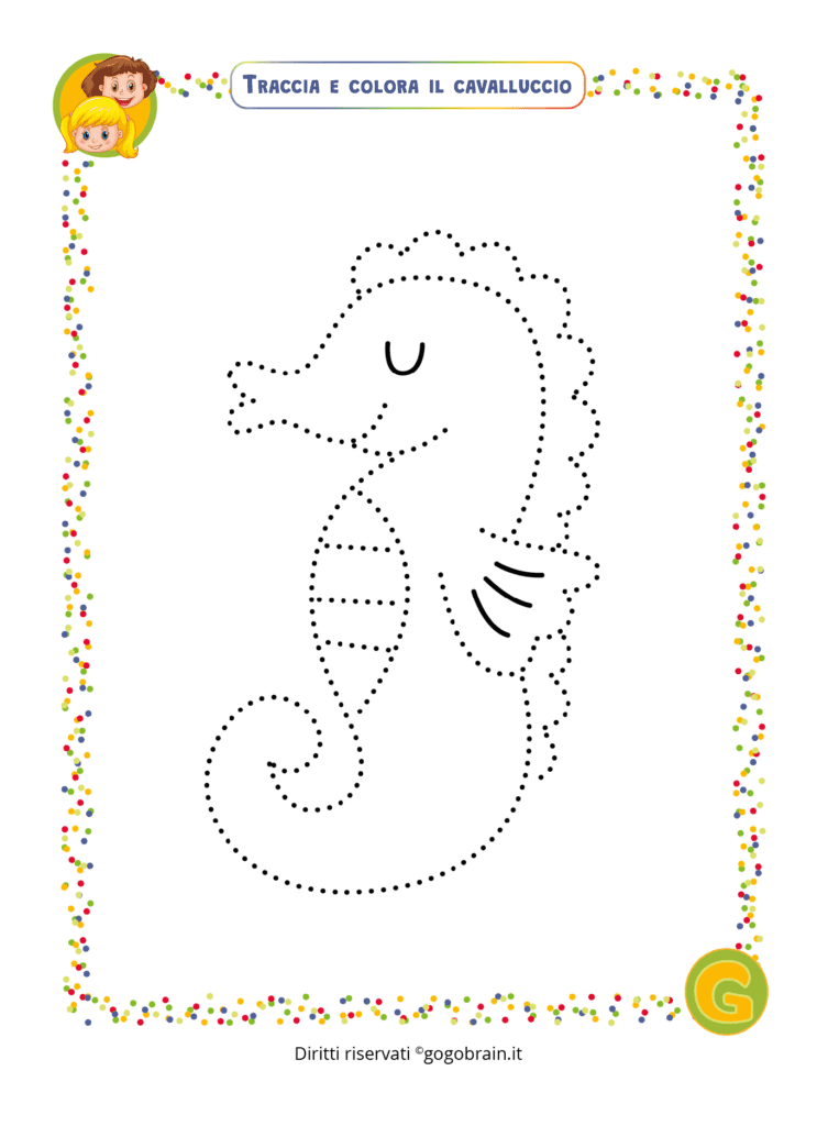 Traccia con una matita la linea tratteggiata e poi colora il disegno … Continua about Traccia e colora il cavalluccio
