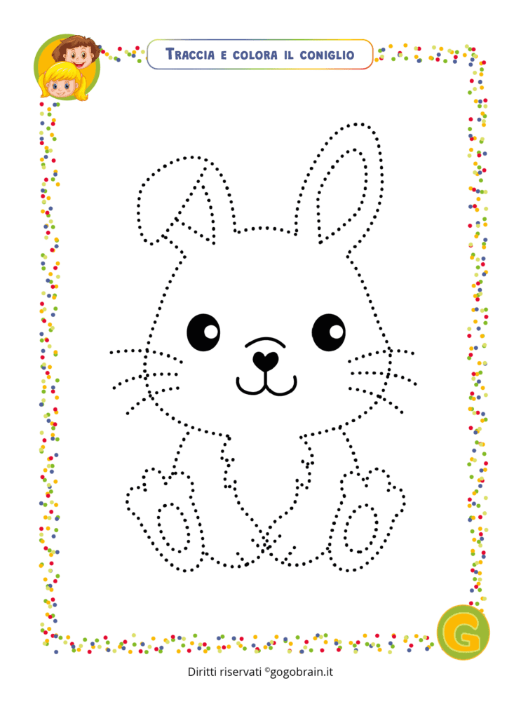 Con una matita passa sopra la linea tratteggiata e poi colora la figura con i tuoi colori preferiti. … Continua about Traccia e colora il Duilio il Coniglio