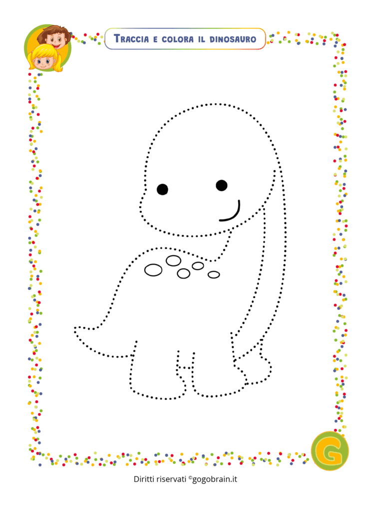 Prendi una matita e segui la linea tratteggiata, poi colora la figura. … Continua about Traccia e colora il cucciolo di dinosauro