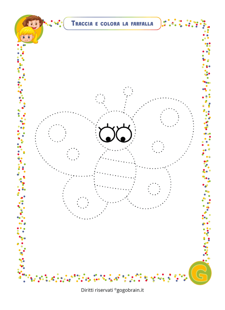 Matita e penne colorate pronte. Ripassa con la matita la linea tretteggiata e colora il disegno. … Continua about Traccia e colora la farfalla