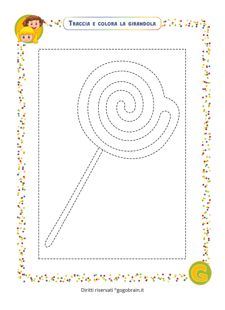 Matita e penne colorate pronte. Ripassa con la matita la linea tretteggiata e colora il disegno. … Continua about Traccia e colora il lecca-lecca