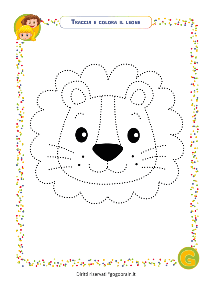 Traccia con una matita la linea tratteggiata e poi colora il disegno … Continua about Traccia e colora il leone