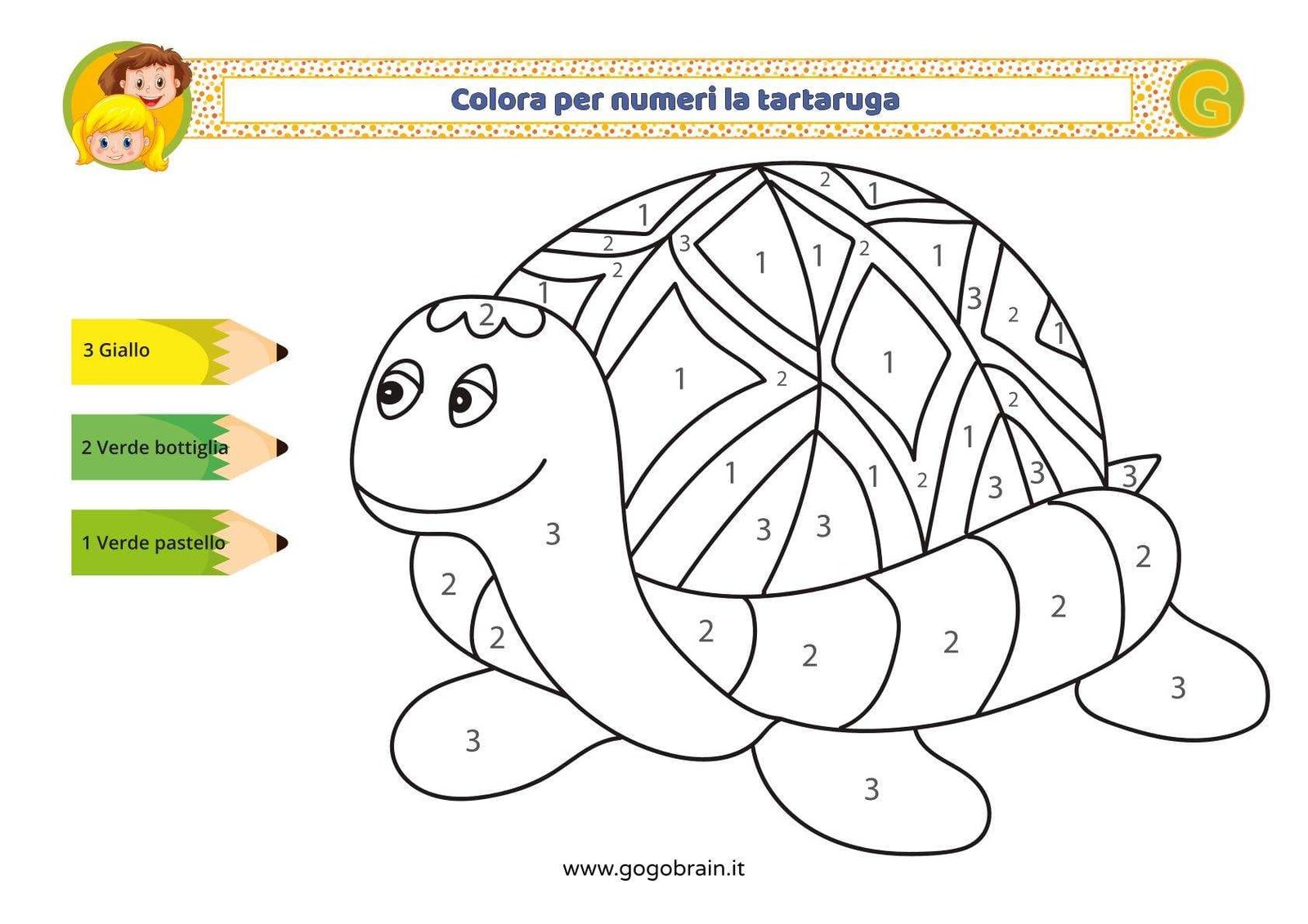 Ad ogni porzione corrisponde un numero e ad ogni numero corrisponde un colore. Passo dopo passo la tartaruga prenderà colore. … Continua about Colora per numeri la tartaruga